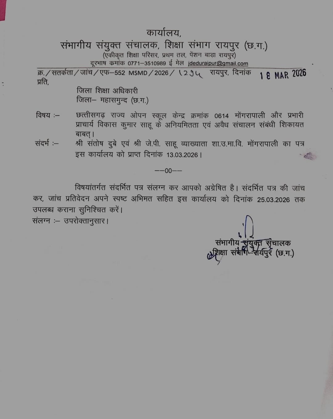 “बागबाहरा के स्कूल मोंगरापाली ओपन परीक्षा केन्द्र में ‘नकल का जिन्न’ हुआ आज़ाद!व्हाइट बोर्ड पर लिखी जा रही परीक्षार्थियों की किस्मत, लाखों की उगाही का खेल बेनकाब” Mahasamund/छत्तीसगढ़ के महासमुंद जिला के बागबाहरा क्षेत्र का एक छोटा सा गांव मोंगरापाली इन दिनों शिक्षा व्यवस्था के एक बड़े और चौंकाने वाले खुलासे के कारण सुर्खियों में है। यहां स्थित छत्तीसगढ़ राज्य ओपन स्कूल के परीक्षा केन्द्र क्रमांक 0614 ने मानो शिक्षा के मंदिर को एक “नकल के बाजार” में बदल दिया था। कहानी किसी फिल्मी स्क्रिप्ट से कम नहीं—जहां “जिन्न” कोई