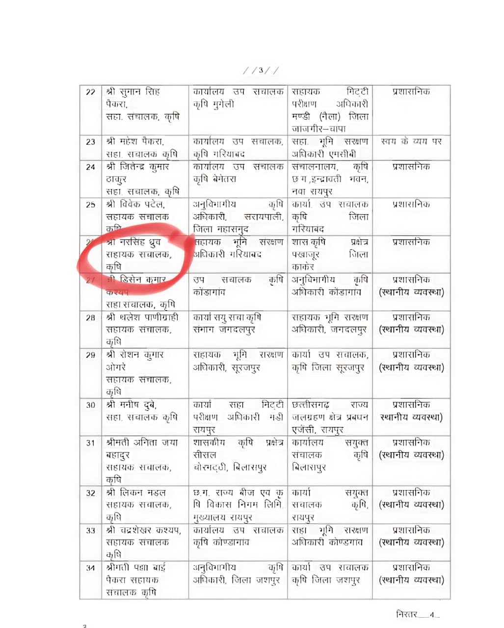 Gariyaband/गरियाबंद जिले में एक प्रशासनिक ड्रामा चरम पर है। शासन द्वारा जारी आदेशों को ठेंगा दिखाते हुए सहायक संचालक कृषि (वर्तमान पद: सहायक भूमि संरक्षक अधिकारी, गरियाबंद) नरसिंह ध्रुव का नाम फिर सुर्खियों में है। स्थानांतरण आदेश जारी हुए महीनों बीत गए, नई पदस्थापना शासकीय कृषि नवीन प्रक्षेत्र पखांजूर, जिला कांकेर में की गई, लेकिन साहब अभी तक गरियाबंद की माटी से मोह नहीं छोड़ पा रहे। सवाल यह है कि आखिर विभागीय आदेश के बावजूद इन्हें भारमुक्त क्यों नहीं किया गया? और क्या विभाग भी प्रशासन की आंखों में धूल झोंक रहा है?